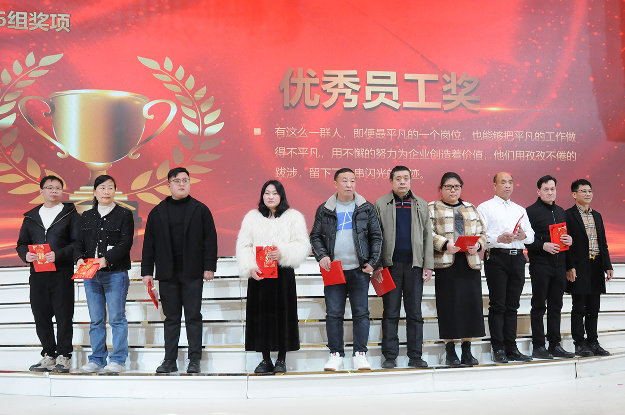 年会的议程安排得紧凑有序,既有对过去一年的优秀员工表彰和总结回顾,也有对未来一年的展望规划。在隆重、欢快的气氛中,年会主持人宣读了公司表彰决定,对2023年度一批业绩突出的团队和个人进行了表彰和奖励。在过去的一年里,全体伯特利人戮力同心,风雨共担,奋勇向前,取得了可喜的成绩。他们兢兢业业,锐意进取,为实现公司业务持续发展注入新动能。其中,涌现出一批最佳新锐奖、最佳协作奖、劳动模范、技术标兵、保密先进工作者、先进团队等多项荣誉,这些荣誉犹如明亮的灯塔,照亮我们前行的路,指引我们向更高的目标迈进。这些奖项不仅是对员工们工作成果的肯定,更是对优秀者辛勤付出的回报。公司领导班子成员分别上台为获奖团队和个人颁发了奖牌和奖金,彰显榜样的力量,向奋斗者致敬。
