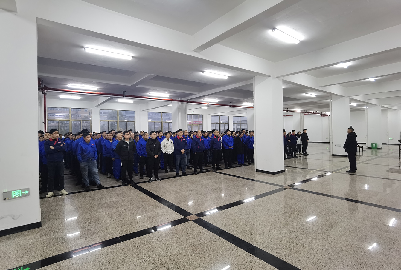 3月4日上午,公司三江厂区召开节后复工生产晨会,各车间、部门全体员工参加安全教育。因室外下着雨,安全晨会移至室内进行。