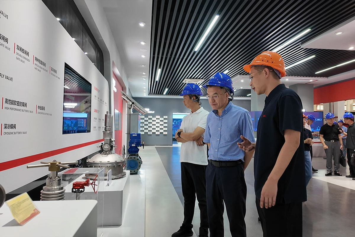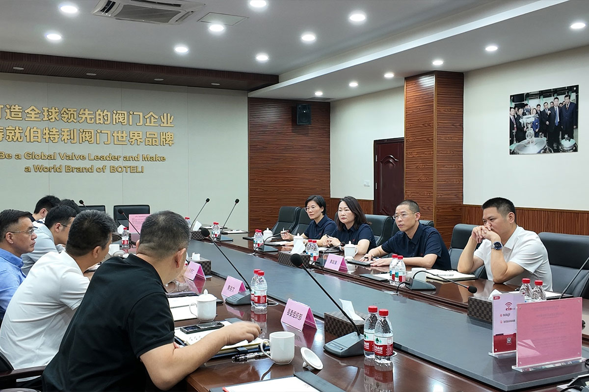 调研组一行首先走进伯特利科技数字展厅,详细了解了伯特利科技的发展历程、核心产品与技术成果。黄聪策总经理重点介绍了几款行业领先的阀门产品,展现了公司在严苛工况与新能源领域的创新突破:强制密封球阀(轨道球阀、)快速切换盲板阀、金属密封低温蝶阀、液氦阀门,朱启仁副部长对产品技术成果给予高度评价,强调科技创新是推动企业高质量发展的核心引擎。