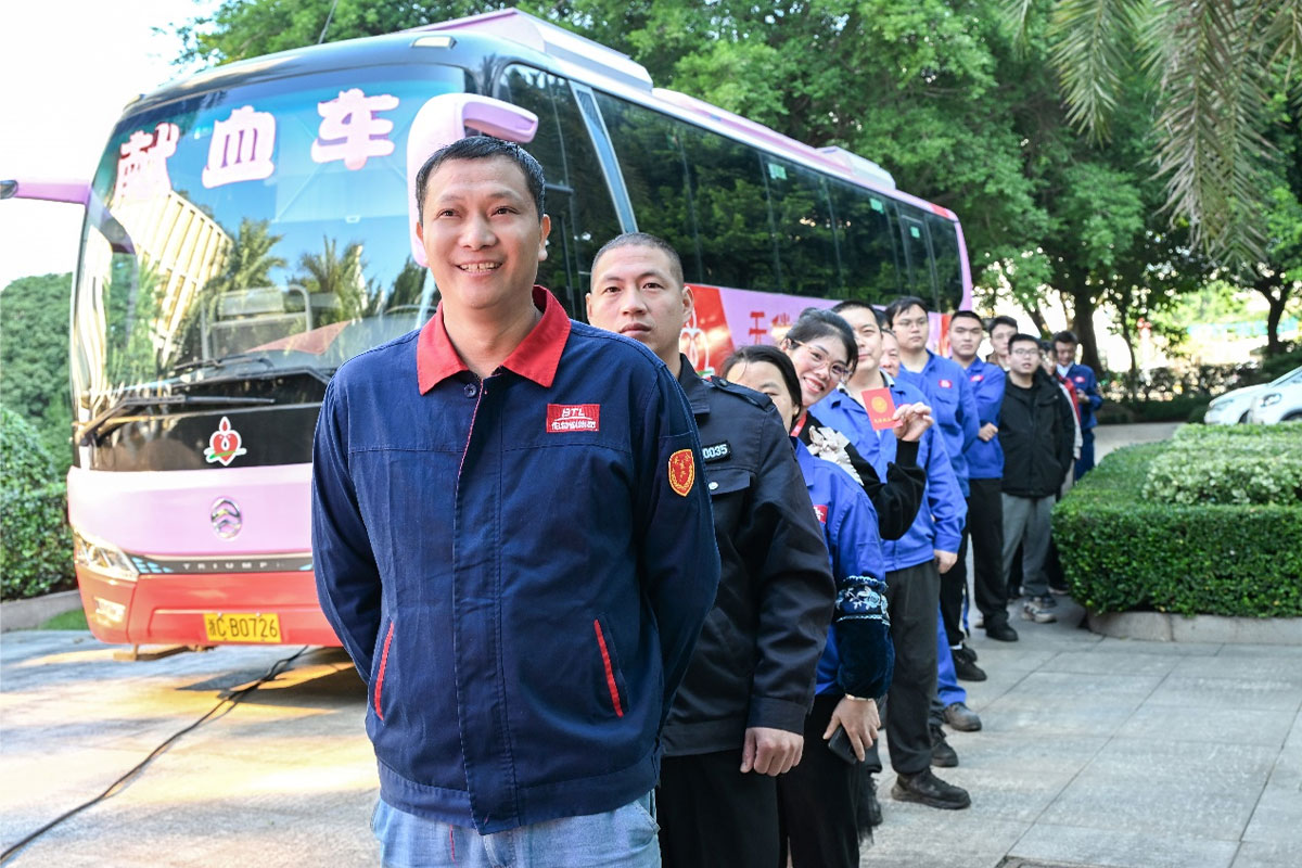 献血当日,永嘉中心血站采血车入驻在隔壁的红蜻蜓厂区,员工们在行政经理带领下,按照登记、体检、初筛等流程有序参与,现场秩序井然,体现了伯特利人严谨细致的工作作风。