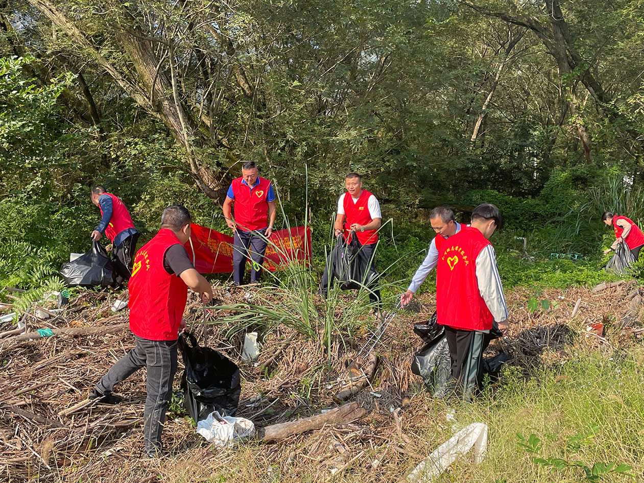 2023年10月15日上午,伯特利党支部环保志愿服务队联合红蜻蜓环保服务队共35名志愿者来到永嘉县下城岙水源地开展“共享社·幸福里”保护楠溪江志愿服务活动。